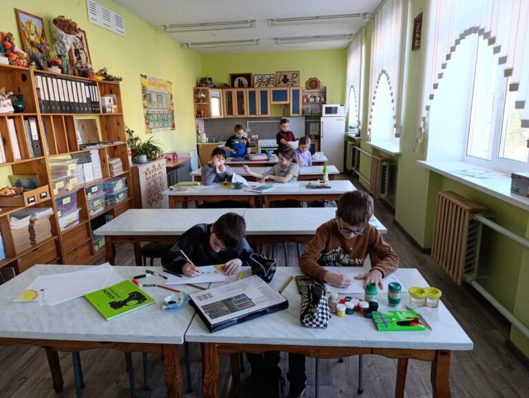 6‑й школьный день в объединении по интересам «Волшебный карандаш» прошёл под темой «Мир космоса в детском творчестве». Ребята рисовали звёзды, планеты и целые галактики, превращая