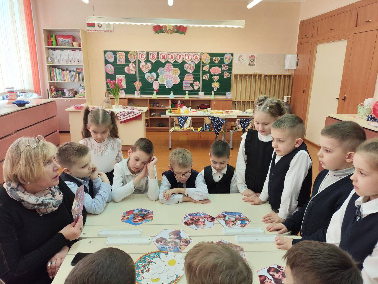 В 1-А классе прошло праздничное мероприятие «Весенний калейдоскоп», посвящённое Международному женскому дню. Мальчики поздравили девочек и сказали им много добрых и приятных слов.