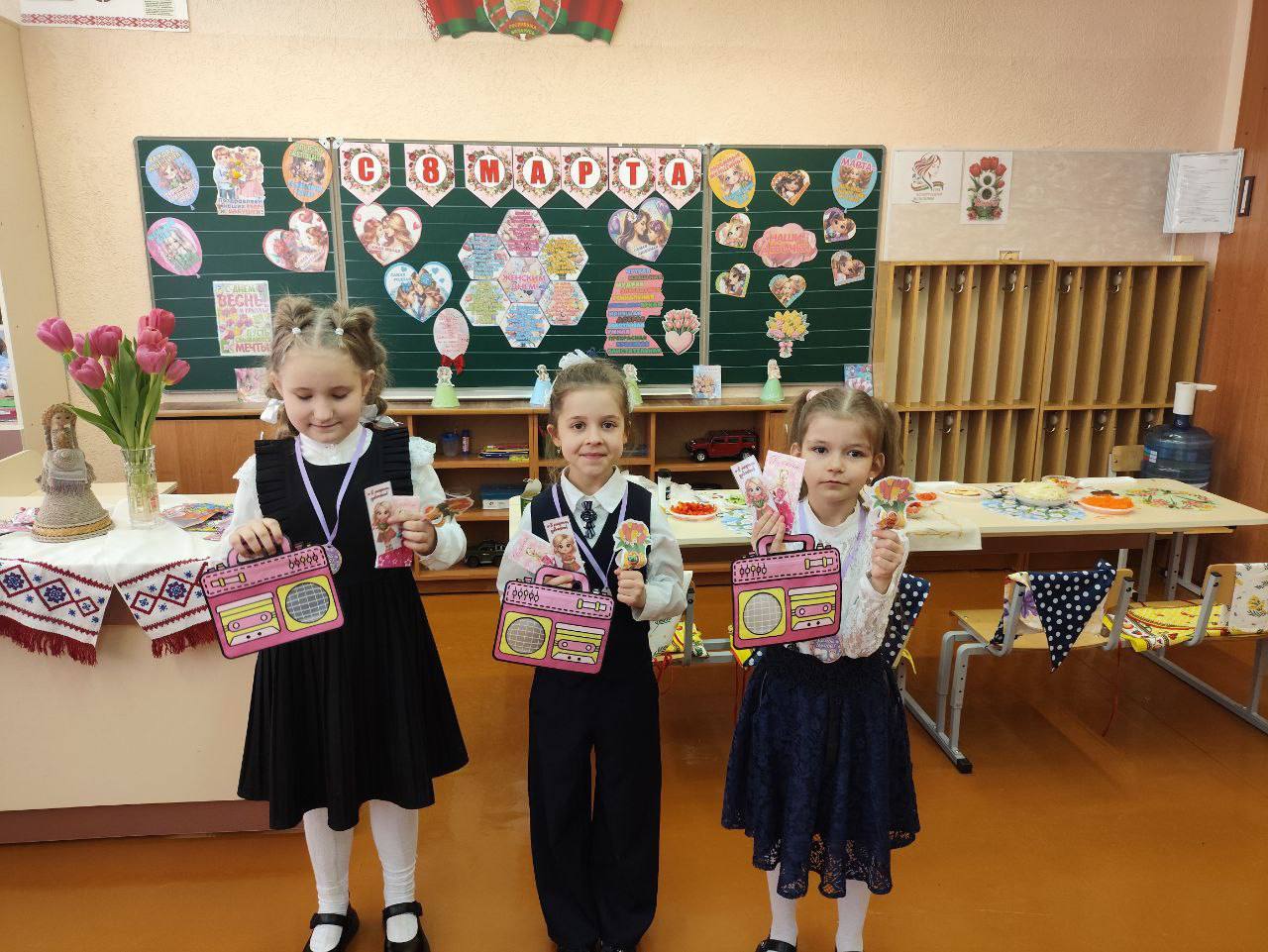 В 1-А классе прошло праздничное мероприятие «Весенний калейдоскоп», посвящённое Международному женскому дню. Мальчики поздравили девочек и сказали им много добрых и приятных слов.